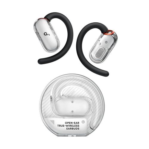 Drivers: 16 × 13mm with high-elastic diaphragm and hourglass-shaped chamber Sound Technology: BassUp (up to 7.5dB bass enhancement), directional acoustics EQ Customization: Soundcore app with 22 presets Playtime: 6 hours per charge, 21 hours total with charging case Fast Charging: Supports quick recharges Charging Interface: USB-C on lidless case Bluetooth: Version 5.4 with multipoint support Water Resistance: IP55 dust and water resistant (with SweatGuard technology) Microphones: 4 with AI algorithm for noise reduction Design: Open-ear with 4-level adjustable ear hooks Weight: Approximately 10.1g per earbud, case around 48.8g Controls: Touch controls for playback, volume, calls Additional Features: Lidless magnetic case, LED light bar, app integration Color: Black Package Contents: Earbuds, charging case, USB-C cable, quick guide