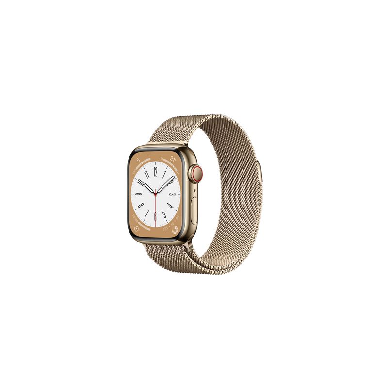 The Apple Watch Series 8 GPS + Cellular 45mm offers advanced health insights and cellular freedom. It provides a bright, responsive display and long battery life. The gold stainless steel case with gold Milanese loop delivers premium comfort and luxury style. This model provides excellent value for active users.