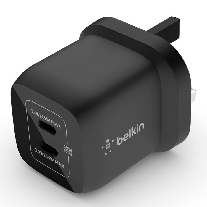 Belkin BoostCharge Pro Dual USB-C GaN Wall Charger 45W Black WCH011MYBK