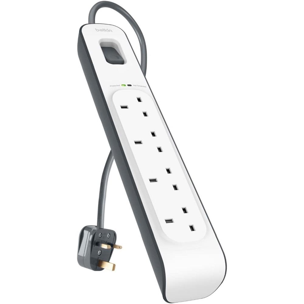Belkin BSV400af2M Surge Protector Strip safeguards essential electronics from power threats. This reliable 4-outlet strip with 2m cord delivers essential surge protection for home and office setups. Voltage spikes, surges from lightning, and fluctuations damage devices like computers, printers, and routers. The strip absorbs harmful energy to prevent costly repairs or data loss. Oversized MOVs handle excess electricity effectively. The extended cord offers flexible placement away from wall outlets.