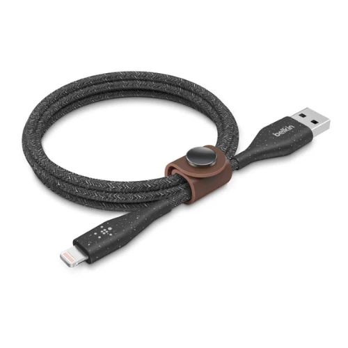 The Belkin DuraTek Plus Lightning to USB-A 1m Black provides safe, fast charging and exceptional durability. It offers reliable performance and perfect Apple compatibility. The black braided design with strap adds clean style and convenience. This cable is essential for Lightning device charging.