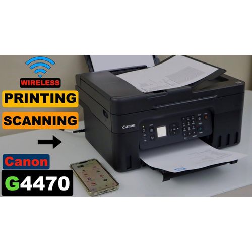 The Canon PIXMA G4470 Multifunction Inkjet Printer Color Print Scan Copy Fax Black maximizes efficiency with MegaTank ink system. This all-in-one supports high-volume printing up to 6,000 black and 7,700 color pages. Featuring wireless connectivity, fax, and ADF, it ideal for small offices and homes. Discover its advanced features for professional-grade output.