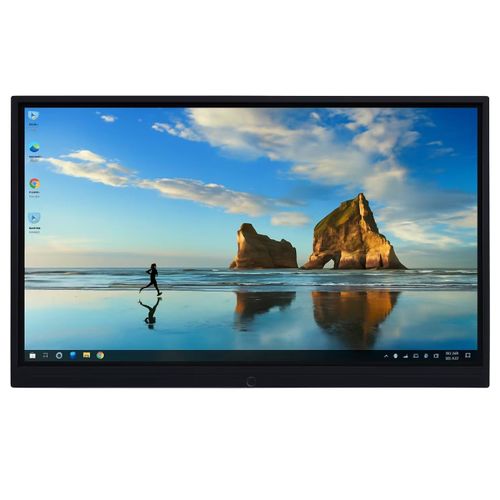 The display presents stunning detail through 3840 × 2160 resolution. Anti-glare tempered glass minimizes reflections. Infrared touch supports up to 40 simultaneous points. Built-in Android 13 runs applications smoothly without extra hardware.