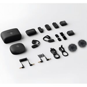 - Included: 2 transmitters, camera-mount receiver, USB-C receiver, 2 OWS earphones, charging case, windscreens, cables, adapters