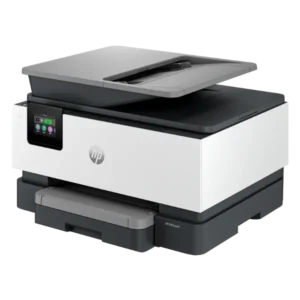 The HP OfficeJet Pro 9123 All-in-One Printer is a 4-in-1 colour inkjet printer designed for small to medium-sized businesses, offering print, scan, copy, and fax functions. It delivers fast printing at up to 22 ppm (black) and 18 ppm (colour) with a resolution of 4800×1200 optimized dpi for professional-quality documents. Featuring dual-band Wi-Fi, Ethernet, USB, and mobile printing via HP Smart app, Apple AirPrint, Mopria, and Wi-Fi Direct, it supports seamless connectivity for up to 5 users. The printer uses HP 938/938e ink cartridges, includes a 2.7-inch colour touchscreen, a 35-sheet ADF with single-pass duplex scanning, and automatic duplex printing. HP Wolf Pro Security ensures secure document handling, and its 40% recycled plastic construction enhances sustainability. Find it at Threeways Gadget Hub.