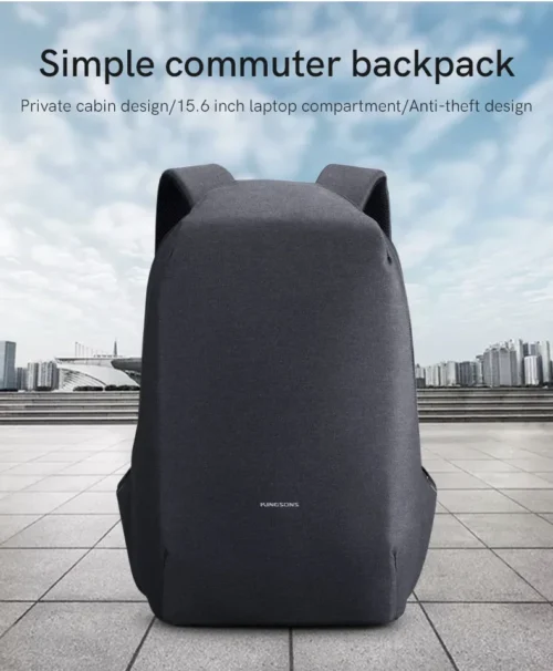 The Kingsons 15.6″ Anti Theft Series Black Laptop Backpack (KS3149W) is a secure, durable, and stylish backpack designed for laptops up to 15.6 inches. Crafted from water-resistant nylon, it features a hidden zipper design, a padded laptop sleeve, a concealed back pocket, and a built-in USB charging port. Ideal for travelers, professionals, and students, it offers ample storage for laptops, documents, and accessories, with a limited lifetime warranty for reliability. Its sleek black design ensures a professional look. Available at Threeways Gadget Hub, this backpack combines advanced security, comfort, and modern functionality.