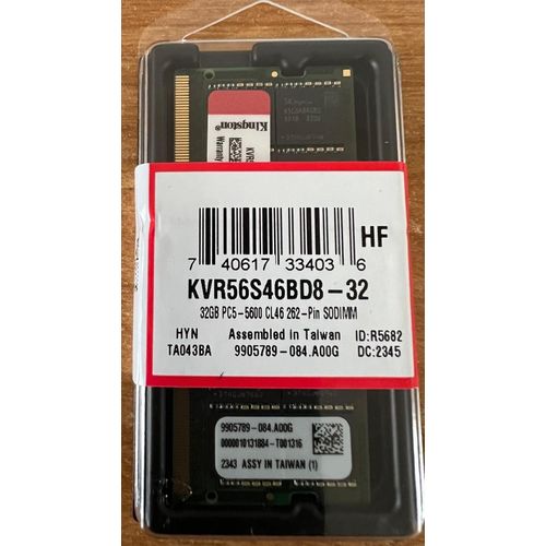 Unlock unparalleled laptop performance with the Kingston KVR56S46BD8-32, a robust 32GB DDR5 SODIMM memory module engineered for speed and efficiency. With a blazing 5600MHz clock speed, this RAM delivers exceptional data transfer rates, making it perfect for professionals, gamers, and creators handling resource-intensive tasks. Upgrade your laptop to tackle multitasking and demanding applications effortlessly.